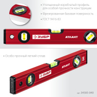 Уровень с усиленным профилем ГОСТ 9416-83, 400 мм ЗУБР АТЛАНТ