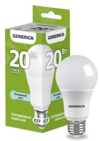 Лампа светодиодная A60 груша 20Вт 230В 4000К E27 GENERICA LL-A60-20-230-40-E27-G IEK ВИА